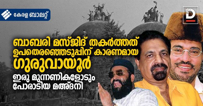 1992 ഡിസംബര് 6ന് സംഘപരിവാര് ബാബരി മസ്ജിദ് തകര്ത്തതിന് ശേഷം കേരളത്തില് നടന്ന ആദ്യ തെരഞ്ഞെടുപ്പായിരുന്നു ഗുരുവായൂരിലേത്. ഉപതെരഞ്ഞെടുപ്പ് നടക്കാനുണ്ടായ കാരണവും ബാബരി മസ്ജിദ് ധ്വംസനവുമായി ബന്ധപ്പെട്ടതായിരുന്നു.