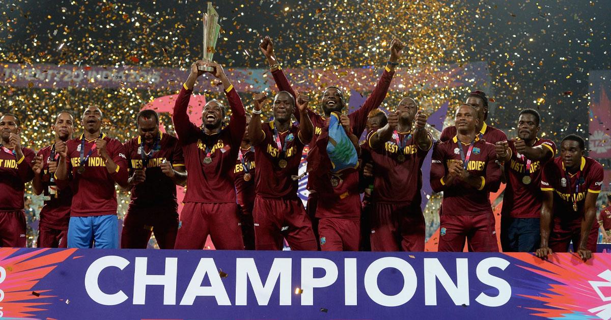 ടി-20 ലോകകപ്പിന്റെ ചരിത്രത്തില് കിരീടനേട്ടം ആവര്ത്തിച്ച ആദ്യ ടീം വെസ്റ്റ് ഇന്ഡീസാണ്. 2012, 2016 ലോകകപ്പുകളിലായിരുന്നു ടീമിന്റെ നേട്ടം. 2012ല് ശ്രീലങ്കയെ പരാജയപ്പെടുത്തി കപ്പുയര്ത്തിയ കരിബീയന്സ് 2016ല് ഇംഗ്ലണ്ടിനെ തകര്ത്താണ് ക്രിക്കറ്റ് ലോകത്തിന്റെ നെറുകിലെത്തിയത്.