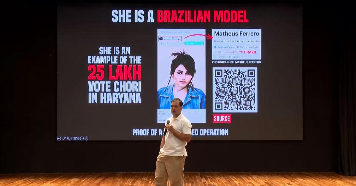 ഹരിയാനയില്‍ 25 ലക്ഷം വ്യാജവോട്ടുകള്‍, ബ്രസീലിയന്‍ മോഡലിന്റെ ചിത്രമുള്ള 22 ഐ.ഡികള്‍; തെളിവുകള്‍ നിരത്തി രാഹുല്‍ ഗാന്ധി