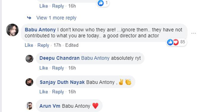 ബാബു ആന്റണിയുടെ കമന്റ് ഇങ്ങനെയാണ്