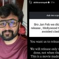 ഫെബ്രുവരിയില് ക്ലാഷില്ലാതെ റിലീസ് ചെയ്തൂടെ എന്ന് ആരാധകന്; ഫാക്ടറിയില് ഉണ്ടാക്കുന്ന ബിസ്കറ്റല്ല സിനിമയെന്ന് മോളിവുഡ് ടൈംസ് സംവിധായകന്