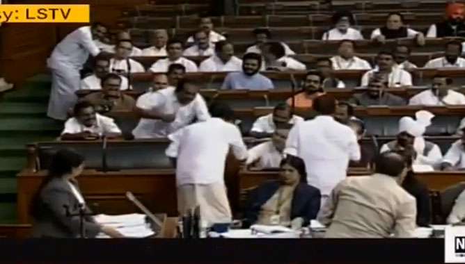 കൊടിക്കുന്നില് സുരേഷ് ഹിന്ദിയിലാണ് സത്യപ്രതിജ്ഞ ചൊല്ലിയത്. ഇതിനെ സോണിയാ ഗാന്ധി ശകാരിച്ചു. തുടര്ന്ന് ഹിന്ദിയില് സത്യപ്രതിജ്ഞ ചെയ്യാനിരുന്ന രാജ്മോഹന് ഉണ്ണിത്താന് നിലപാട് മാറ്റി. തുടര്ന്നുള്ളവര് ഇംഗ്ലീഷിലും മലയാളത്തിലുമായാണ് സത്യപ്രതിജ്ഞ ചൊല്ലിയത്.
