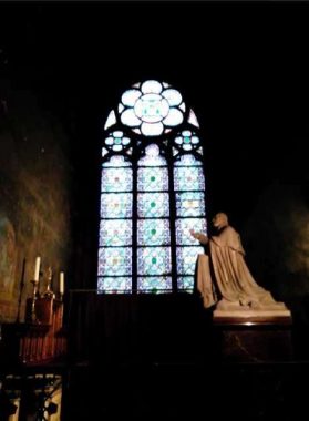 അത്രയധികം മരപ്പണികളുള്ളതിനാല് കാട് എന്ന വിളിപ്പേരുണ്ടായിരുന്ന അതിന്റെ മച്ചുകളെ തീ വിഴുങ്ങിയിരിക്കുന്നു. വെളിച്ചത്തിന്റെ വീചികളെ മാസ്മരികവര്ണ്ണങ്ങളായി ചുമരിലെ അലങ്കാരപ്പണികളിലേക്കും ചിത്രങ്ങളിലേക്കും തിരിച്ചു വിട്ടിരുന്ന റോസ് വിന്റോസ് ഉരുകിപ്പോയതായി സംശയിക്കുന്നു.