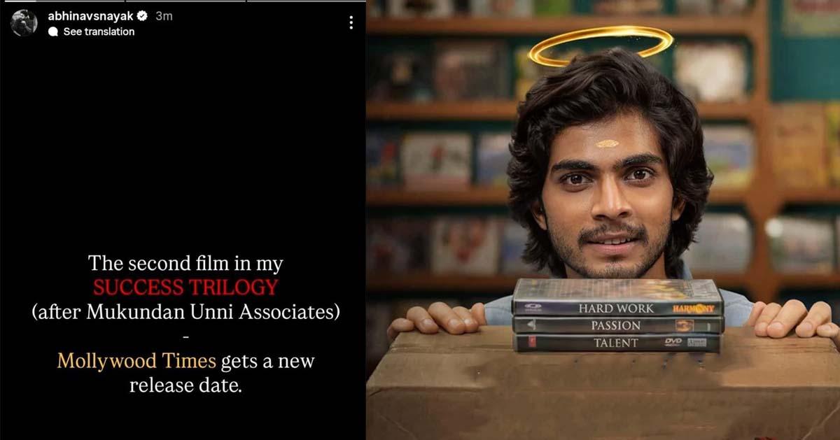 സക്സസ് ട്രിലോജിയിലെ രണ്ടാമത്തെ ചിത്രമാണ് മോളിവുഡ് ടൈംസെന്ന് അഭിനവ് പങ്കുവെച്ചു. ഈ ട്രിലോജിയിലെ ആദ്യചിത്രം മുകുന്ദനുണ്ണി അസോസിയേറ്റ്സാണെന്ന് പറഞ്ഞുകൊണ്ടാണ് പോസ്റ്റ് ആരംഭിക്കുന്നത്. രണ്ടാമത്തെ ചിത്രമായ മോളിവുഡ് ടൈംസിന്റെ പുതിയ റിലീസ് ഡേറ്റ് വരുംദിവസങ്ങളില് പുറത്തുവരുമെന്നും സ്റ്റോറിയില് പറയുന്നു.