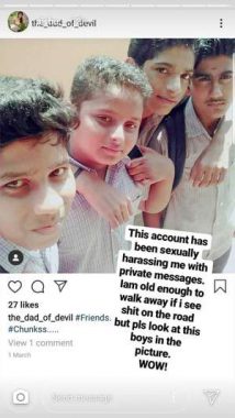 ഫ്രണ്ട്സ് എന്നഹാഷ് ടാഗോടെയാണ് ആണ്കുട്ടികളുടെ ചിത്രം പ്രൊഫൈലില് പോസ്റ്റ് ചെയ്തിരിക്കുന്നത്. താരത്തിനെ പിന്തുണച്ചും ഇത്തരം ആളുകള്ക്കെതിരെ നടപടിയെടുക്കണമെന്നും കാണിച്ച് നിരവധി പേര് രംഗത്തെത്തിയിട്ടുണ്ട്.