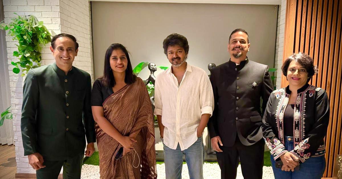 വിജയ് എന്.ഡി.ടി.വി ടീമിനൊപ്പം. Photo: Shiv Aroor/ X.com