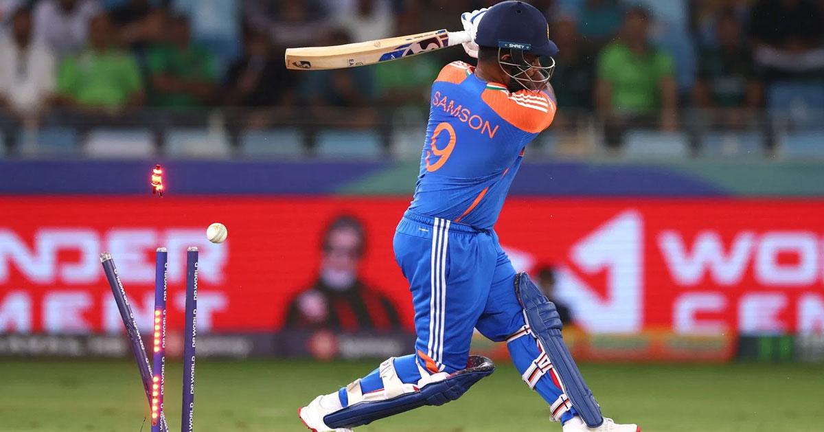 ന്യൂസിലാന്‍ഡിനെതിരായ മൂന്നാം മത്സരത്തില്‍ സഞ്ജു സാംസണ്‍ ബൗള്‍ഡായപ്പോള്‍ – Photo: getty