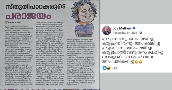ജോയ് മാത്യു മാതൃഭൂമിയില് എഴുതിയ ലേഖനവും ഫേസ്ബുക്ക് പോസ്റ്റും