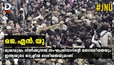 അങ്ങനെ അന്തരംഗത്തില് ഹിറ്റ്ലര് അപ്പൂപ്പനേയും പേറി നടക്കുന്ന സ്വപ്നാടനക്കാര് തങ്ങള് പ്രത്യേകമായി നിര്മിച്ചെടുക്കുന്ന ജാതി-മത രാഷ്ട്രങ്ങളിലേക്കെത്തുവാന് വെമ്പുമ്പോള് ജെ.എന്.യു എന്നല്ല അറിവിന്റെ ഉറവായ ഏത് സര്വ്വകലാശാലയേയും ഇല്ലായ്മ ചെയ്യുവാന് ശ്രമിക്കുന്നതില് അത്ഭുതങ്ങളില്ല.