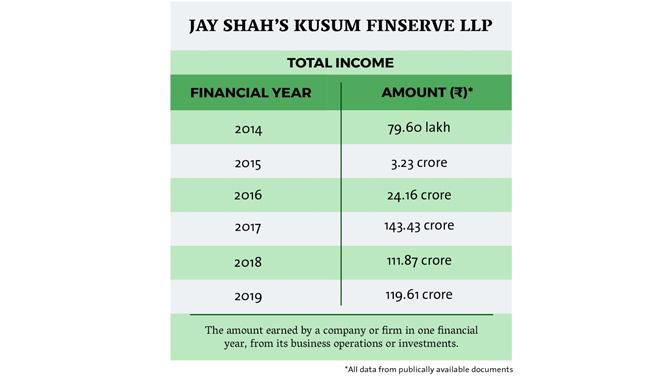 ജയ്ഷാ പങ്കാളിയായ കുസും ഫിന്‍സെര്‍വ് എല്‍.എല്‍.പി സമര്‍പ്പിച്ച രേഖകളിലാണ് കമ്പനിയുടെ ബിസിനസിലുണ്ടായിരിക്കുന്ന വലിയ വളര്‍ച്ച രേഖപ്പെടുത്തിയിരിക്കുന്നത്. കമ്പനി ഡയറക്ടര്‍ക്ക് തുല്യമായ സ്ഥാനമാണ് ജയ്ഷായ്ക്ക് കുസും ഫിന്‍സെര്‍വ് എല്‍.എല്‍.പിയില്‍ ഉള്ളത്.