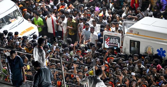 രാഷ്ട്രീയക്കാരനായി മാറിയ ശേഷം ചലച്ചിത്ര നടന് വിജയ് നടത്തിയ രണ്ടു വന് സമ്മേളനങ്ങളില് തിക്കിലും തിരക്കിലും പെട്ട് ആളുകള് കുഴഞ്ഞു വീണ സംഭവങ്ങള് ഉണ്ടായിട്ടുണ്ടെങ്കിലും അത്തരം സുരക്ഷാ പ്രശ്നങ്ങളെ അവഗണിക്കാനും അത് തങ്ങളുടെ ജനപിന്തുണയുടെ അളവുകോലായി അഭിമാനം കൊള്ളാനുമാണ് ടി.വി.കെ നേതൃത്വം ശ്രമിച്ചത്.