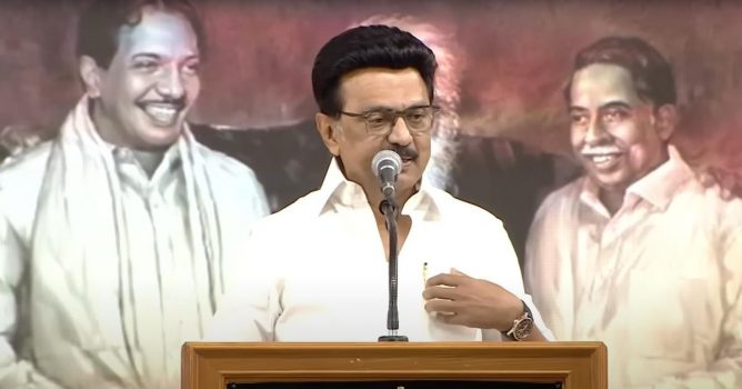 കരൂരില് നടന്ന മൂപ്പരുംവിഴ പരിപാടിയില് എം.കെ. സ്റ്റാലിന് സംസാരിക്കുന്നു