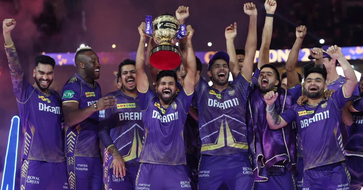 2024 ഐ.പി.എൽ ട്രോഫിയുമായി കൊൽക്കത്ത നൈറ്റ് റൈഡേഴ്സ് താരങ്ങൾ. Photo: Indian Premier League/x.com