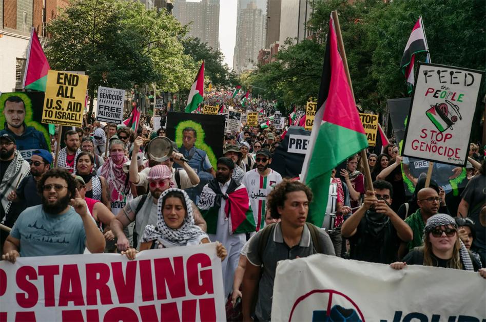 മാന്ഹാട്ടനില് നടന്ന ഫലസ്തീന് അനുകൂല റാലിയില് നിന്നും
