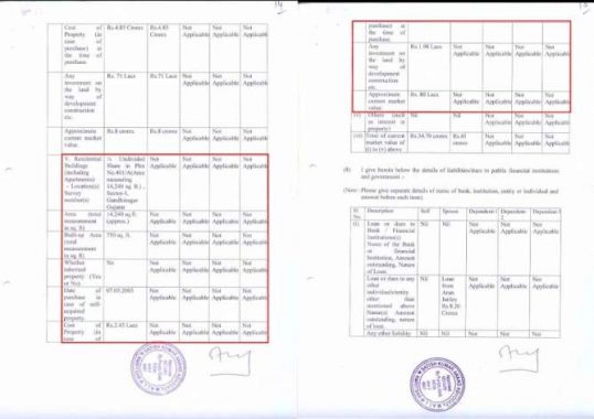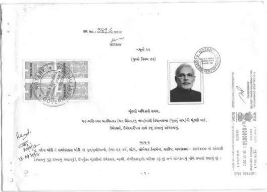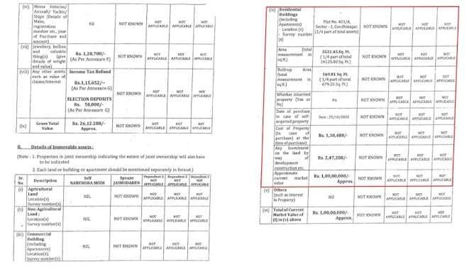 2012 മുതലുള്ള സത്യവാങ്മൂലങ്ങളിൽ, ഗാന്ധിനഗറിലുള്ള പ്ലോട്ട് 401/എ എന്ന പേരിലുള്ള ഭൂമിയുടെ നാലിലൊന്ന് ഭാഗം തന്റെ ഉടമസ്ഥതയിലാണെന്നും മോദി പറയുന്നുണ്ട്. എന്നാൽ ഇങ്ങനെയൊരു സ്ഥലം ഗാന്ധിനഗറിൽ ഇല്ലെന്നാണ് ഗുജറാത്ത് റവന്യു വകുപ്പിന്റൽ നിന്നുമുള്ള രേഖകൾ പരിശോധിച്ചപ്പോൾ മനസിലാക്കാൻ കഴിഞ്ഞത്. ഗോഖലെ തന്റെ ഹർജിയിലൂടെ പറയുന്നുണ്ട്.