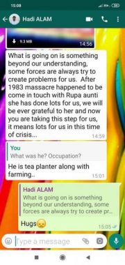 ഇക്കഴിഞ്ഞ ദിവസം അവരുടെ കുടുംബത്തിലെ മൂത്ത മകന് ഹാദി ആലവുമായി സംസാരിച്ചിരുന്നു. ഹബീബുര് റഹ്മാന് അടക്കം ആ കുടുംബത്തിലെ അഞ്ചു പേര് NRC ലിസ്റ്റില് നിന്ന് പുറത്തായി. ഹാദി ആലം, സഹോദരന്മാരായ വസീര് ആലം, തന്വീര് ആലം എന്നിവരും ഹാദിയുടെ ഭാര്യയും വസീറിന്റെ അഞ്ചു വയസ്സുള്ള മകളും ലിസ്റ്റില് ഇല്ല. അവരുടെ ഉമ്മ ഹലീമയും, തന്വീറിന്റെയും വസീറിന്റെയും ഭാര്യമാരും തന്വീറിന്റെയും ഹാദിയുടെയും മക്കളും മാത്രമേ ലിസ്റ്റില് ഉള്പ്പെട്ടിട്ടുള്ളൂ. അദ്ദേഹം അയച്ച നീണ്ട മെസേജിന്റെ പ്രസക്തഭാഗങ്ങള് നിങ്ങളുടെ വായനക്കായി ഇങ്ങനെ പരിഭാഷപ്പെടുത്തുന്നു.