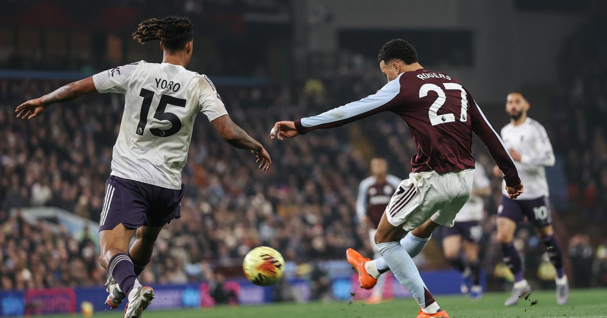 മത്സരത്തിൽ പരസ്പരം ഏറ്റുമുട്ടുന്ന ആസ്റ്റൺ വില്ല – മാഞ്ചസ്റ്റർ യുണൈറ്റഡ് താരങ്ങൾ. Photo: Aston Villa/x.com