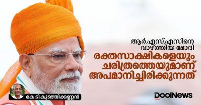 ആര്.എസ്.എസിനെ വാഴ്ത്തിയ മോദി രക്തസാക്ഷികളെയും ചരിത്രത്തെയുമാണ് അപമാനിച്ചിരിക്കുന്നത്
