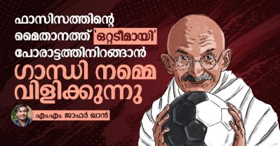 ഫാസിസത്തിന്റെ മൈതാനത്ത് 'ഒറ്റടീമായി' പോരാട്ടത്തിനിറങ്ങാന് ഗാന്ധി നമ്മെ വിളിക്കുന്നു