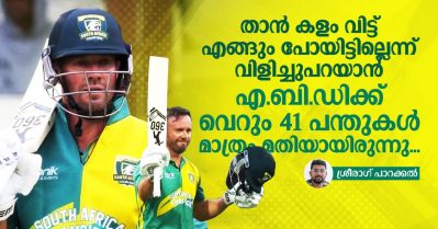 താന് കളം വിട്ട് എങ്ങും പോയിട്ടില്ലെന്ന് വിളിച്ചുപറയാന് എ.ബി.ഡിക്ക് വെറും 41 പന്തുകള് മാത്രം മതിയായിരുന്നു...