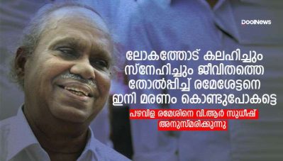 ലോകത്തോട് കലഹിച്ചും സ്നേഹിച്ചും ജീവിതത്തെ തോല്പ്പിച്ച് രമേശേട്ടനെ ഇനി മരണം കൊണ്ടുപോകട്ടെ; പഴവിള രമേശിനെ അനുസ്മരിച്ച് വി.ആര് സുധീഷ്