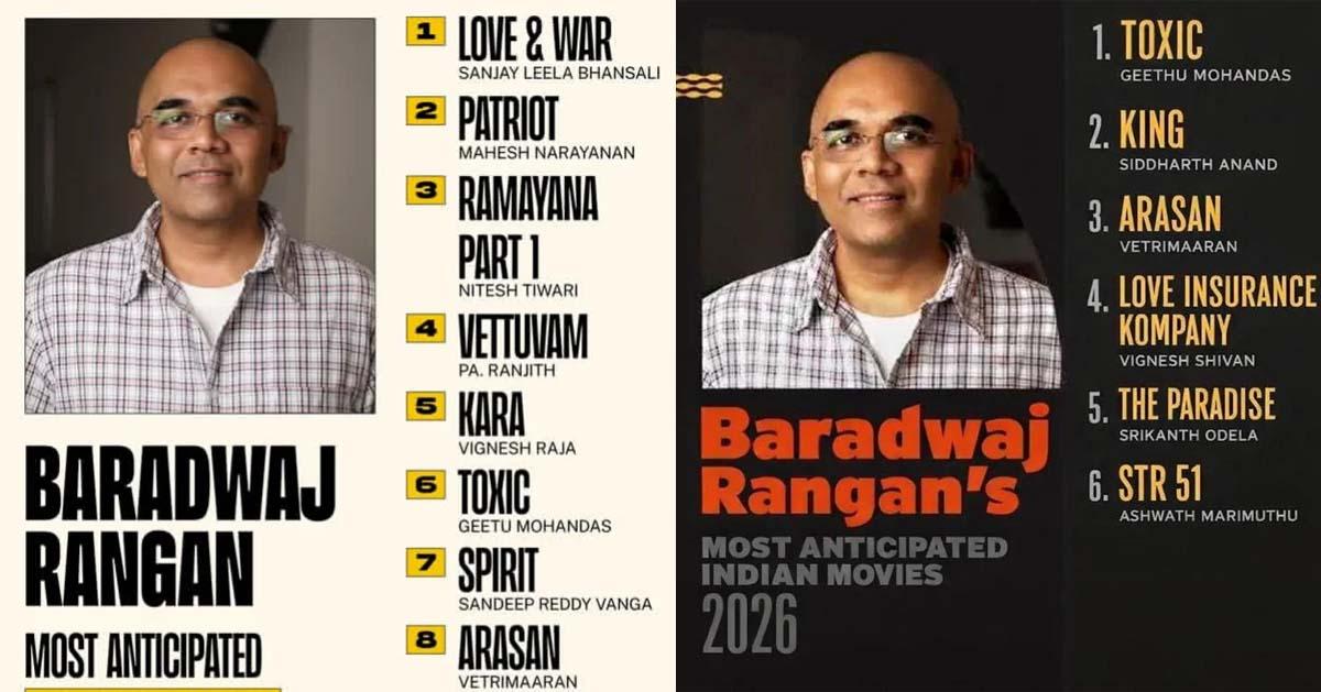 2025ലെ ഏറ്റവും പ്രതീക്ഷയുള്ള സിനിമകളായി ഭരദ്വാജ് രംഗന് പങ്കുവെച്ച സിനിമകളില് ഒന്നുപോലും പ്രേക്ഷകരുടെ പ്രതീക്ഷക്കൊത്ത് ഉയരാതെ പോയി. കൂലി, തഗ് ലൈഫ്, പരാശക്തി, ഡൊമിനിക് ആന്ഡ് ദി ലേഡീസ് പേഴ്സ് എന്നീ സിനിമകളെല്ലാം പരാജയമായി മാറി. ഈ വര്ഷം ഭരദ്വാജിന്റെ പ്രതീക്ഷയുള്ള സിനിമകളുടെ കാര്യത്തിലും സ്ഥിതി വ്യത്യസ്തമല്ല.