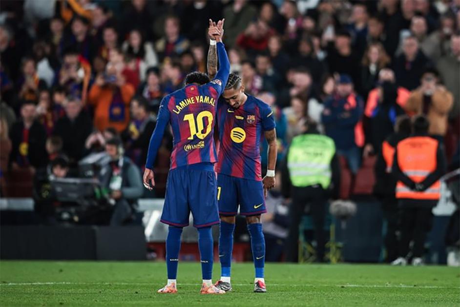 റഫീന്യയും ലാമിന് യമാലും. Photo: Barcelona FC/x.com