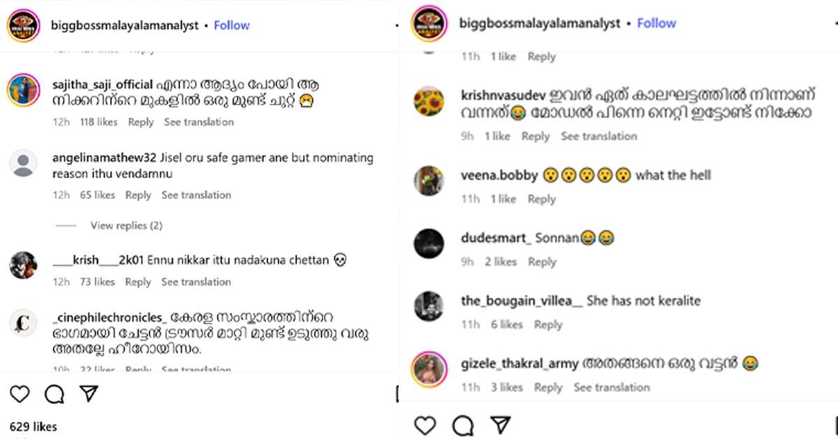 ലെസ്ബിയന് ദമ്പതികളായ ആദിലയെയും നൂറയെയും മത്സരാര്ത്ഥികളായി തെരഞ്ഞെടുത്ത ഈ സീസണിലാണ് ഇത്തരം പ്രാകൃതമായ ചിന്താഗതിയുമായി ഒരാള് വന്നിരിക്കുന്നതെന്നത് ശ്രദ്ധേയമായ കാര്യമെന്നും കമന്റുകളുണ്ട്. കുങ്കുമപ്പൂവ് എന്ന സീരിയലിലെ രുദ്രന് എന്ന കഥാപാത്രത്തിലൂടെ ശ്രദ്ധേയനായ താരമാണ് ഷാനവാസ്.