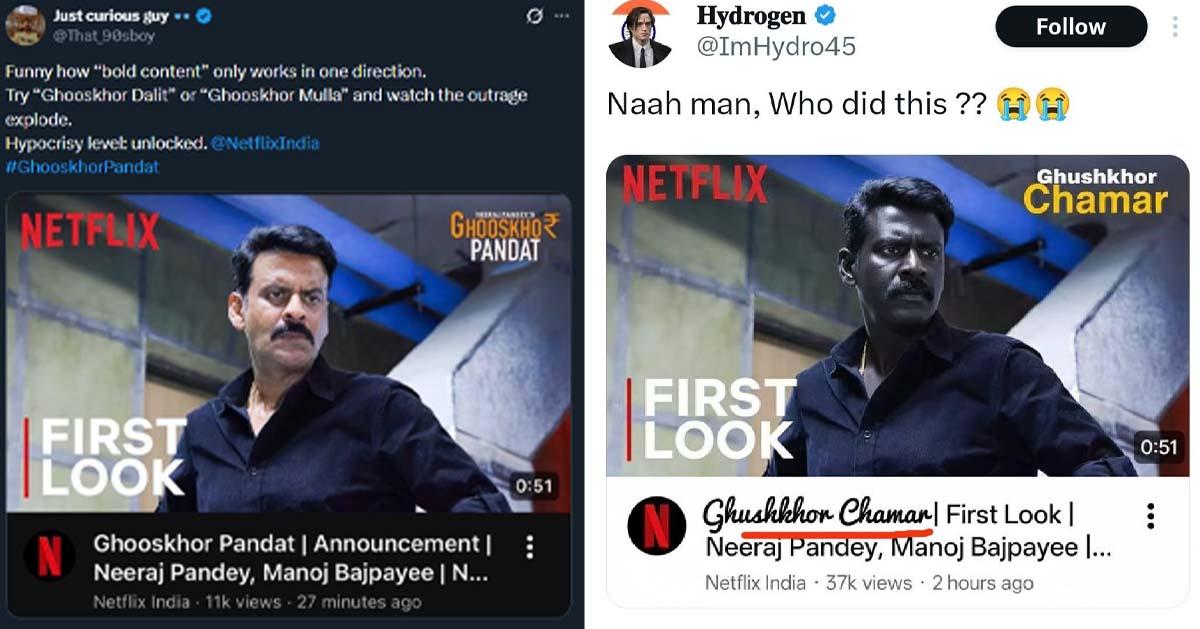 ബ്രാഹ്മണ സമൂഹത്തെ അടച്ചാക്ഷേപിച്ചുകൊണ്ട് ഇത്തരമൊരു ടൈറ്റില് നല്കാന് അണിയറപ്രവര്ത്തകര്ക്ക് എങ്ങനെ ധൈര്യം വന്നു എന്നും ചോദ്യങ്ങളുയരുന്നു. ഖുസ്കൂര് ചമാര്, ഖുസ്കൂര് ദളിത് എന്നൊക്കെ ടൈറ്റില് നല്കിക്കൂടെ എന്നും ചിലര് ചോദിക്കുന്നുണ്ട്. ചിത്രം പ്രേക്ഷകരിലേക്കെത്തിക്കുന്ന നെറ്റ്ഫ്ളിക്സിനെയും പലരും വിമര്ശിക്കുന്നുണ്ട്.