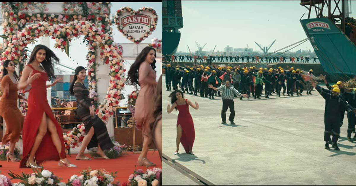 സിനിമയുടെ സാമ്പത്തിക ലാഭത്തിനായി ചില ബ്രാന്ഡുകളുടെ പരസ്യം സിനിമയില് അവിടവിടെയായി പ്ലേസ് ചെയ്യുന്നത് ഇപ്പോള് സ്വാഭാവികമായ കാര്യമാണ്. എന്നാല് ഈ പാട്ടില് ആദ്യം മുതല് ശക്തി മസാലയെ ഓരോ ഫ്രെയിമിലും പ്ലേസ് ചെയ്ത് വെച്ചിരിക്കുകയാണെന്നാണ് ചിലര് ചൂണ്ടിക്കാണിക്കുന്നത്. കണ്ടെയ്നറിലും പെട്ടികളിലും എല്ലാം ബ്രാന്ഡ് ചെയ്തുവെച്ചതിനെ ചിലര് വിമര്ശിക്കുകയും ചെയ്യുന്നുണ്ട്.
