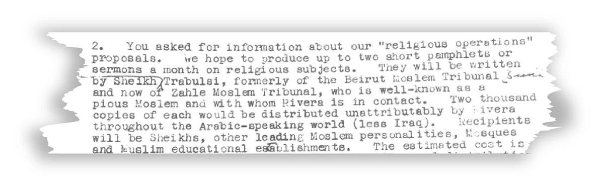 കമ്മ്യൂണിസ്റ്റ് വിരുദ്ധ ആശയങ്ങള്‍ പ്രചരിപ്പിക്കുന്നതിനായി വെള്ളിയാഴ്ചകളിലെ ജുമാ നമസ്‌കാരത്തിന് ശേഷം പ്രത്യേകം തയ്യാറാക്കിയ പ്രസംഗങ്ങള്‍ അവര്‍ മിഡില്‍ ഈസ്റ്റില്‍ വിതരണം ചെയ്തിരുന്നു. ഒപ്പം തന്നെ സമാന ആശയങ്ങള്‍ ഉള്‍ക്കൊള്ളുന്ന റൊമാന്റിക്, ഡിക്ടറ്റീവ് നോവലുകളും അറബി ഭാഷയില്‍ അച്ചടിച്ച് വിതരണം ചെയ്തുകൊണ്ടിരുന്നു.