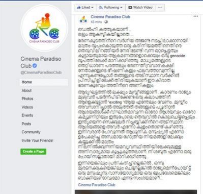ഇനിയെങ്കിലും പ്രതികരിച്ചില്ലെങ്കില് , ഒന്നു മുരടനക്കുകയെങ്കിലും ചെയ്തില്ലങ്കില് രാജ്യമെന്ന്പോയിട്ട് ഒരു മനുഷ്യനു വാസയോഗ്യമായ ഒരു ഭൂപ്രദേശമെങ്കിലും ബാക്കിയുണ്ടാവുമോ എന്നു സംശയമാണെന്നും സിനിമാ പാരഡൈസോ ക്ലബ്ബ് പുറത്തുവിട്ട കുറിപ്പില് പറയുന്നു.