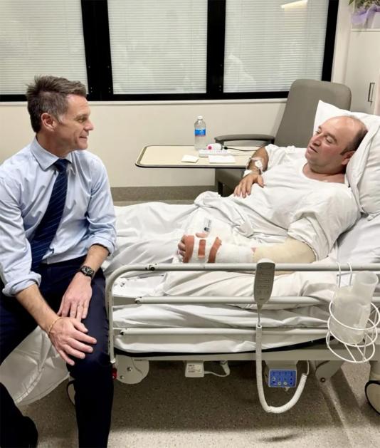 ന്യൂ സൗത്ത് വെയ്ല്സ് പ്രീമിയര് ക്രിസ് മിന്സ് അഹമ്മദ് അല് അഹമ്മദിനെ ആശുപത്രിയിലെത്തി സന്ദര്ശിക്കുന്നു. Photo: x.com