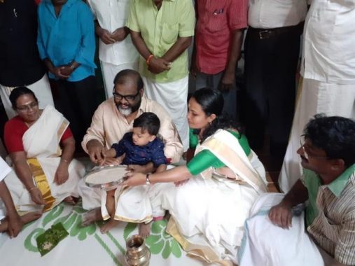 മഹാത്മാ ഗാന്ധിയെന്ന് ആദ്യാക്ഷരം എഴുതിപ്പിച്ച് സി.പി ജോണ്; മെഹദ് ബാരിയുടെ വിദ്യാരംഭം ഇങ്ങനെ