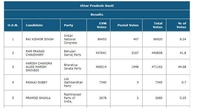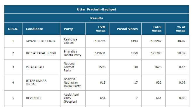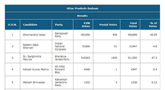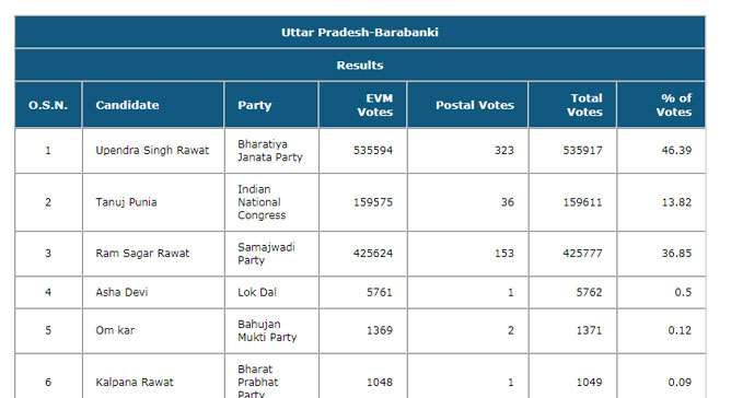 തെരഞ്ഞെടുപ്പു കമ്മീഷന്റെ സൈറ്റിലെ കണക്കുപ്രകാരം ഇവര്ക്കു ലഭിച്ച വോട്ടുകള്:
