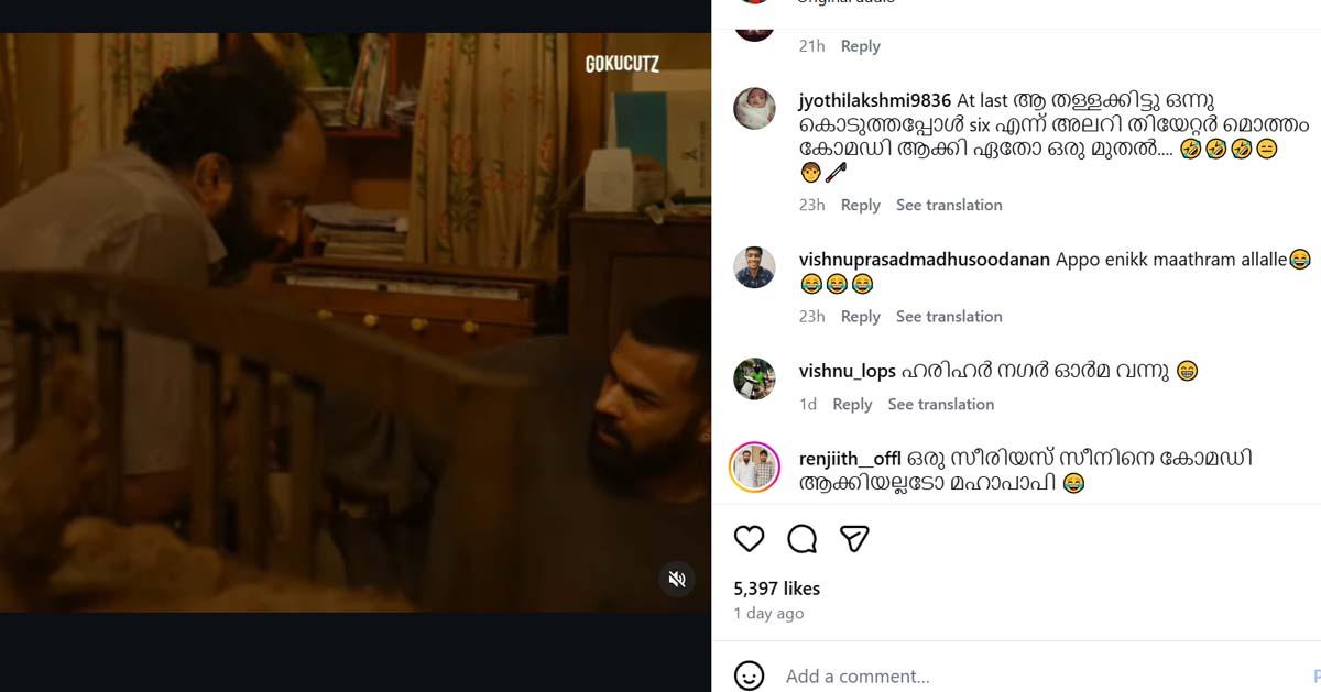 ഒറിജനില് വീഡിയോയുമായി അങ്ങേയറ്റം സിങ്കാകുന്ന തരത്തില് ഈ വീഡിയോ എഡിറ്റ് ചെയ്തത് ഗോകു കട്ട്സ് എന്ന ചാനലാണ്. ഇതിനോടകം ഒരുലക്ഷത്തിലധികം ആളുകള് വീഡിയോ കണ്ടുകഴിഞ്ഞു. അയ്യായിരത്തിലധികം ലൈക്കുകളും ഈ വീഡിയോ സ്വന്തമാക്കി. വീഡിയോയുടെ കമന്റ് ബോക്സും രസകരമാണ്.