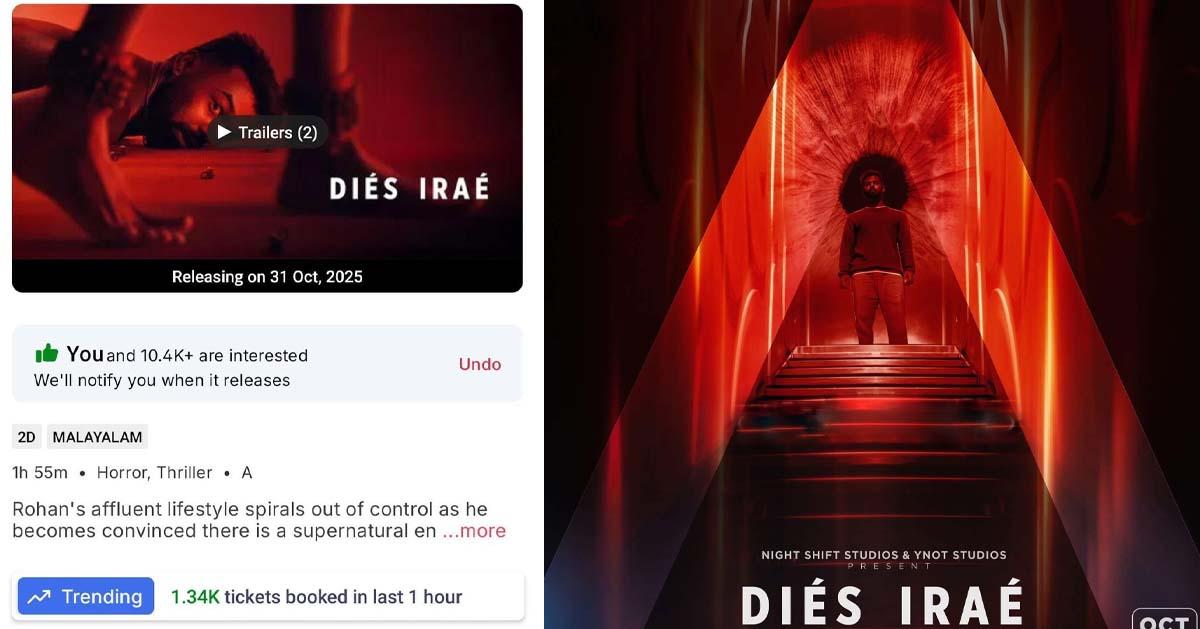 മുന് ചിത്രങ്ങളെപ്പോലെ ഹൊറര് ഴോണറില് തന്നെയാണ് രാഹുല് സദാശിവന് ഡീയസ് ഈറേ ഒരുക്കിയത്. ചിത്രത്തിന്റേതായ പുറത്തിറങ്ങിയ അപ്ഡേറ്റുകളെല്ലാം പ്രതീക്ഷ ഉയര്ത്തുന്നവയായിരുന്നു. വളരെ ചുരുക്കും കഥാപാത്രങ്ങള് മാത്രമേ ചിത്രത്തിലുള്ളൂ. കഴിഞ്ഞദിവസം പുറത്തിറങ്ങിയ റിലീസ് ട്രെയ്ലറിനും മികച്ച പ്രതികരണമായിരുന്നു ലഭിച്ചത്.