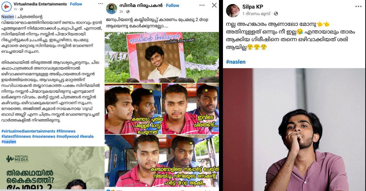 മോളിവുഡ് ടൈംസില് നിന്ന് നസ് ലെന് ഒഴിവായി, പടം ഡ്രോപ്പാക്കി എന്നതാണ് മറ്റൊന്ന്.