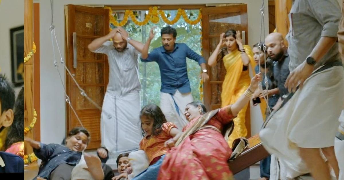 അതൊന്ന് കാണട്ടെ എന്ന് പറഞ്ഞ് അവിടെയുള്ളവരെയെല്ലാം കൂട്ടി രൂപേഷ് നമ്പൂതിരി എന്ന അജുവിന്റെ കഥാപാത്രം ഊഞ്ഞാലില് ചെന്നിരിക്കുന്നുണ്ട്. ‘ഇങ്ങട്ട് വാടാ കേമാ’ എന്ന് പറഞ്ഞുകൊണ്ട് അവിടെ നിന്നിരുന്ന സാമാന്യം തടിച്ച കുട്ടിയെ മടിയിലേക്ക് അജു വിളിച്ചിരുത്തുന്ന നിമിഷം തന്നെ ഊഞ്ഞാല് പൊട്ടുമെന്ന കാര്യം പ്രേക്ഷകര്ക്ക് മനസ്സിലാവും. എന്നിരുന്നാലും വലിയ പ്രതികരണമായിരുന്നു ആ രംഗത്തിന് തിയേറ്ററുകളില് ലഭിച്ചത്.