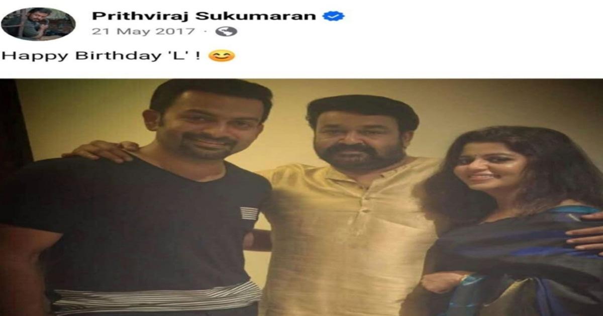 എന്നാല് എപ്പോള് മുതലാണ് M എന്ന ഇംഗ്ലീഷ് അക്ഷരത്തില് പേര് തുടങ്ങുന്ന താരത്തിന് L എന്ന അക്ഷരം ബ്രാന്ഡ് ആയി കിട്ടിയത് എന്ന ചര്ച്ചയിലാണ് സോഷ്യല് മീഡിയയിലെ താരത്തിന്റെ ആരാധകര്. ഇതിന്റെ ഉത്ഭവം തേടിയുള്ള അന്വേഷണം എത്തിനില്ക്കുന്നത് 2017 ല് പൃഥ്വിരാജ് താരത്തിന്റെ ജന്മദിനത്തില് ആശംസകളറിയിച്ച് കൊണ്ട് സമൂഹമാധ്യമങ്ങളില് പങ്കുവെച്ച പോസ്റ്റിലേക്കാണ്. ‘ഹാപ്പി ബര്ത്ത്ഡേ L’ എന്ന കാപ്ഷനോടെയായിരുന്നു പൃഥ്വിയുടെ പോസ്റ്റ്.