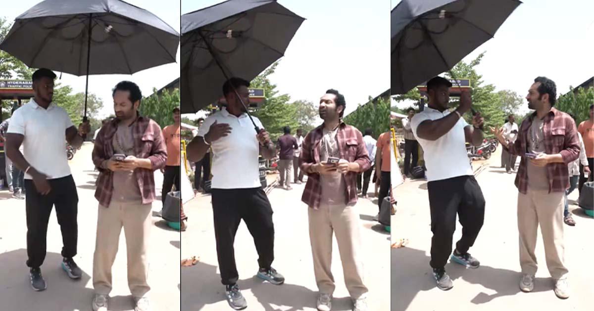 കൊടുംചൂടായതിനാല് കുറച്ചുനേരം അസിസ്റ്റന്റും കുട ചൂടുന്നുണ്ട്. പെട്ടെന്ന് തന്റെ മേലെ വെയിലടിക്കുന്നത് കണ്ട് ഫഹദ് അസിസ്റ്റന്റിനെ നോക്കുന്നുണ്ട്. ഇതോടെ ഫഹദിനും കുട നല്കുന്നത് ചിരി നല്കുന്നു. വിലകൂടിയ കാറില് ലൊക്കേഷനിലേക്കെത്തിയ നിര്മാതാവ് പുറത്തെ ചൂട് സഹിക്കാനാകാതെ കാറില് തിരിച്ചുകയറി റിവേഴ്സടിച്ച് പോകുന്നതും വീഡിയോയില് കാണുന്നുണ്ട്.