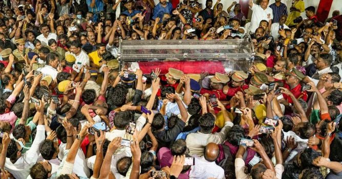 ഇന്നലെ വഴിയരികില് പെരുമഴയത്ത് നിന്നു വിതുമ്പിയ പതിനായിരങ്ങളിലൊരാള് നാളെ വി.എസിന്റെ ശവകൂടീരത്തില് ചെന്നൊന്ന് തൊഴുതെന്നു വിചാരിക്കുക. ഒരു തിരി കത്തിച്ചെന്നു വിചാരിക്കുക. എന്താവും കഥ?