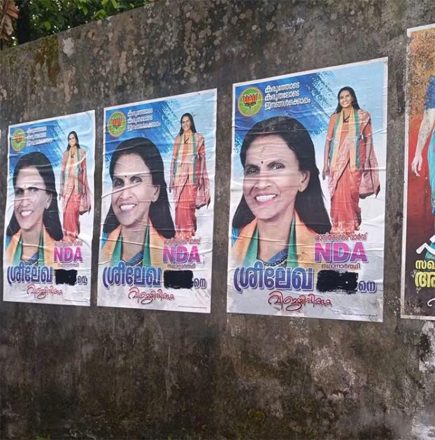 തെരഞ്ഞെടുപ്പ് പ്രചരണത്തിനായുള്ള പോസ്റ്ററുകളിലും ഫ്ളെക്സുകളിലും ഐ.പി.എസ് എന്നും ചുവരെഴുത്തുകളില് ഐ.പി.എസ് (റിട്ട) എന്നുമാണ് രേഖപ്പെടുത്തിയിരുന്നത്. തെരഞ്ഞെടുപ്പ് ഓഫിസിന് മുന്നിലെ ബോര്ഡില് ആര്. ശ്രീലേഖ എന്ന് മാത്രമാണ് എഴുതിയിരിക്കുന്നത്.