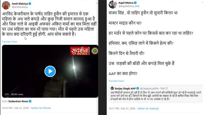 ‘പെണ്കുട്ടിയെ താഹിര് ഹുസൈന്റെ വീട്ടിലേക്ക് വലിച്ചിഴച്ചുകൊണ്ടുവന്നുവെന്നും കൊലപ്പെടുത്തിയശേഷം മൃതദേഹം അഴുക്കുചാലില് ഉപേക്ഷിക്കുകയായിരുന്നെന്നും സാക്ഷി വീഡിയോയില് പറയുന്നുണ്ട്. പെണ്കുട്ടിയുടെ കത്തിക്കരിഞ്ഞ വസ്ത്രങ്ങളും ബാഗും ദൃശ്യങ്ങളില് കാണിക്കുന്നുണ്ട്. ഫെബ്രുവരി 27 ന് പൊലീസ് കണ്ടെത്തിയ മരിച്ച നിലയില് കണ്ടെത്തിയ പെണ്കുട്ടിയുടേതാണ് ഇതെല്ലാം എന്നാണ് റിപ്പോര്ട്ടറും സാക്ഷിയും പറയുന്നത്.
