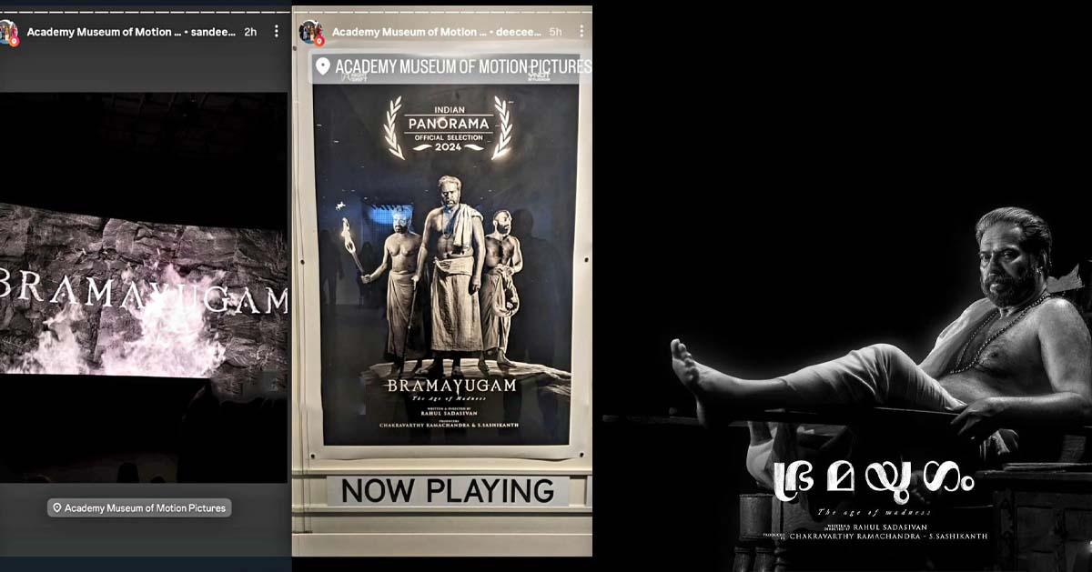 നമ്മുടെ മമ്മൂക്ക ഇപ്പോള് റോമിങ്ങാ, ഇന്റര്നാഷണല് റോമിങ്, അക്കാദമി മ്യൂസിയത്തില് ഭ്രമയുഗം പ്രദര്ശിപ്പിച്ചതിന് പിന്നാലെ മാസ് സ്റ്റാറ്റസുമായി ആരാധകര്