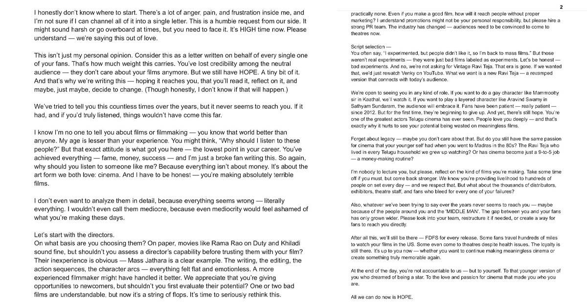 Content Highlight: Fans wrote request letter to Ravi Teja after continuous flops