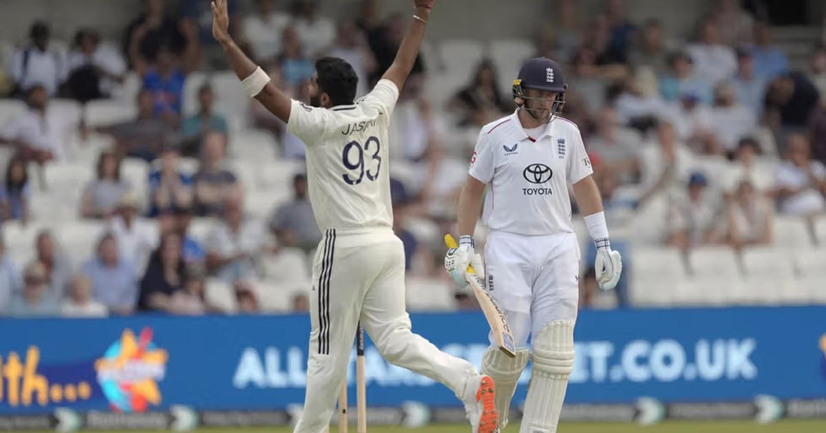 ജോ റൂട്ടാണ് ശേഷം ക്രീസിലെത്തിയത്. റൂട്ടിനെ ഒപ്പം കൂട്ടി പോപ്പ് വീണ്ടും സ്കോര് ബോര്ഡ് ചലിപ്പിച്ചു. മൂന്നാം വിക്കറ്റില് 80 റണ്സിന്റെ കൂട്ടുകെട്ടുമായി ഇരുവരും ചേര്ന്ന് ഇന്നിങ്സ് കെട്ടിപ്പൊക്കുന്നതിനിടെ റൂട്ടിനെ മടക്കി ബുംറ അടുത്ത ബ്രേക് ത്രൂവും സമ്മാനിച്ചു. 58 പന്തില് 28 റണ്സ് നേടിയാണ് റൂട്ട് മടങ്ങിയത്.