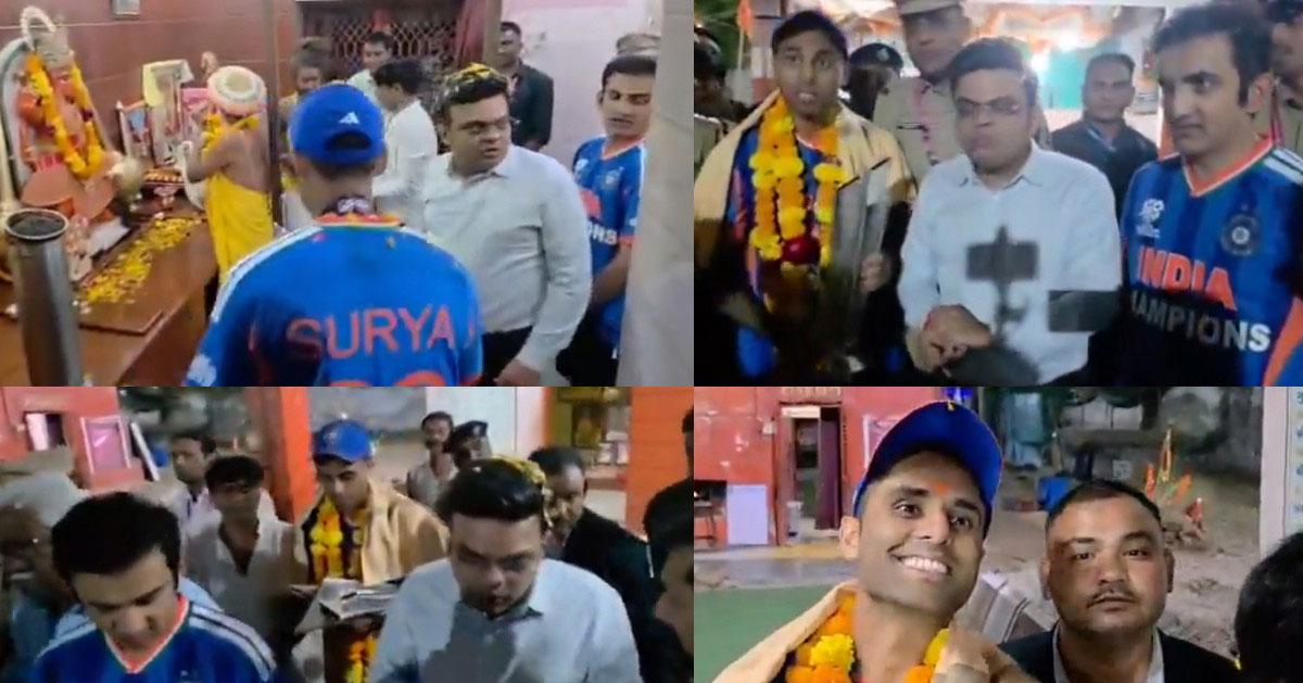 ഇന്ത്യയുടെ ലോകകപ്പ് വിജയത്തിന് ശേഷം കിരീടവുമായി ക്യാപ്റ്റന് സൂര്യകുമാര് യാദവും പരിശീലകന് ഗൗതം ഗംഭീറും ഐ.സി.സി ചെയര്മാന് ജയ് ഷായും അഹമ്മദാബാദിലെ ഹനുമാന് ക്ഷേത്രത്തില് ദര്ശനം നടത്തിയിരുന്നു.