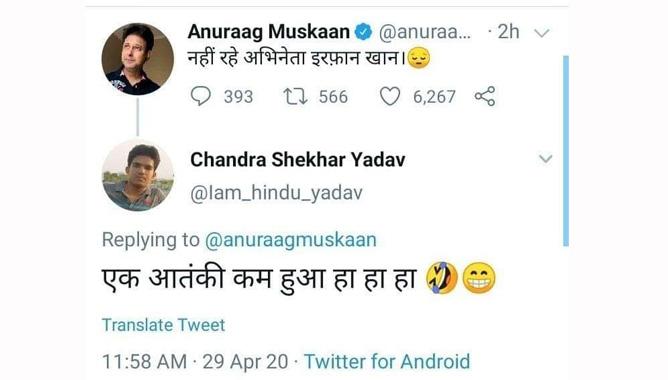 ന്യൂദല്ഹി: നടന് ഇര്ഫാന്റെ ഖാന്റെ മരണത്തില് വിദ്വേഷ പ്രചരണവുമായി സംഘി അനുകൂല സോഷ്യല്മീഡിയാ ഹാന്ഡിലുകള്. ഒരു ജിഹാദി കൂടി ഇല്ലാതായി എന്ന് പറഞ്ഞാണ് സോഷ്യല് മീഡിയയില് വിദ്വേഷപ്രചരണം.