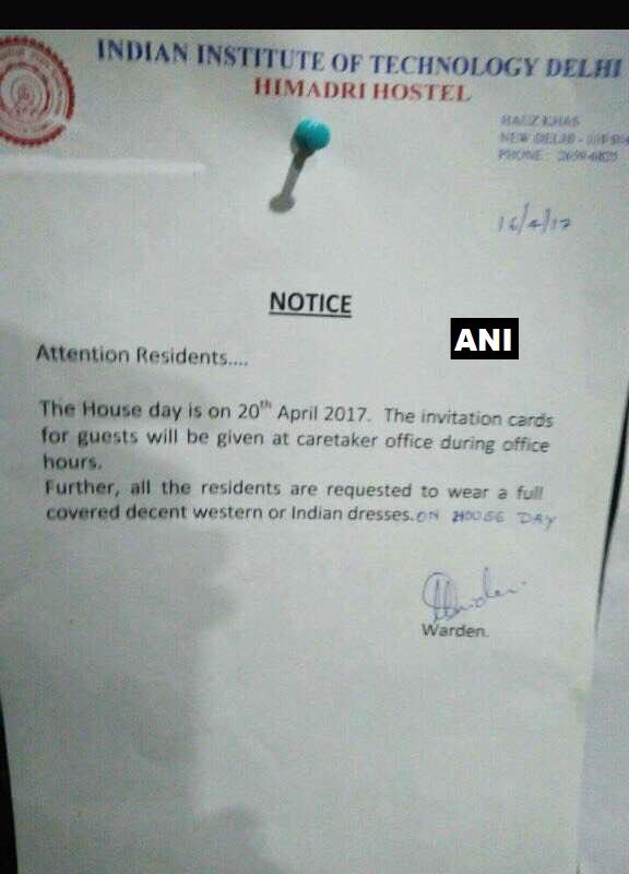 ഐ.ഐ.ടിയുടെ ഹിമാദ്രി ഹോസ്റ്റലിലാണ് നോട്ടീസ് പതിച്ചതെന്ന് ഹിന്ദുസ്ഥാന് ടൈംസ് റിപ്പോര്ട്ട് ചെയ്യുന്നു. ഇത്തരത്തിലുള്ള വിവേചനങ്ങള് ഏര്പ്പെടുത്തുന്നത് ഇതാദ്യമായല്ലെന്നാണ് പെണ്കുട്ടികള് പറയുന്നത് എന്നാല് ഇത്തരത്തില് എഴുതി തയ്യാറാക്കിയ നോട്ടീസ് പുറത്തിറക്കുന്നത് ഇതാദ്യമായാണെന്നും വിദ്യാര്ത്ഥികള് സാക്ഷ്യപ്പെടുത്തുന്നു.